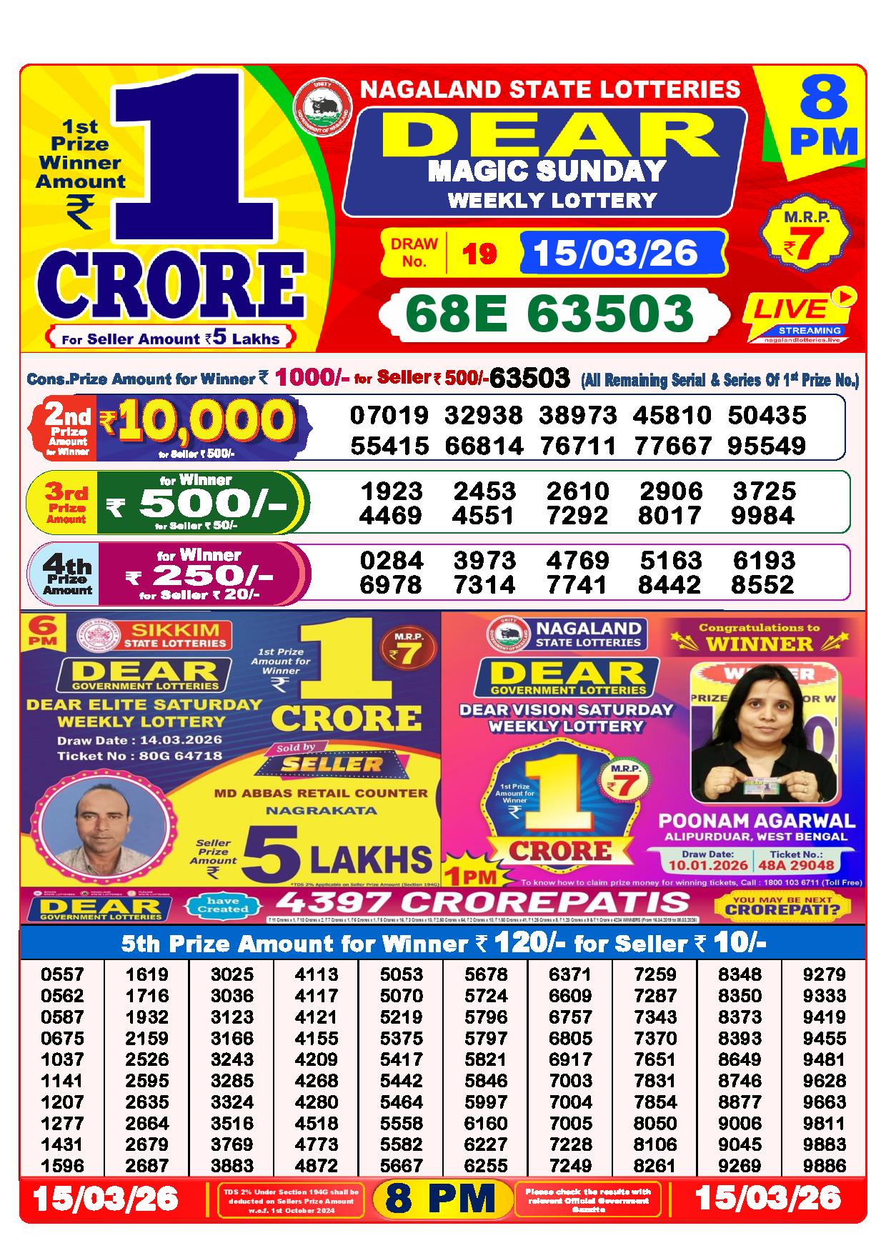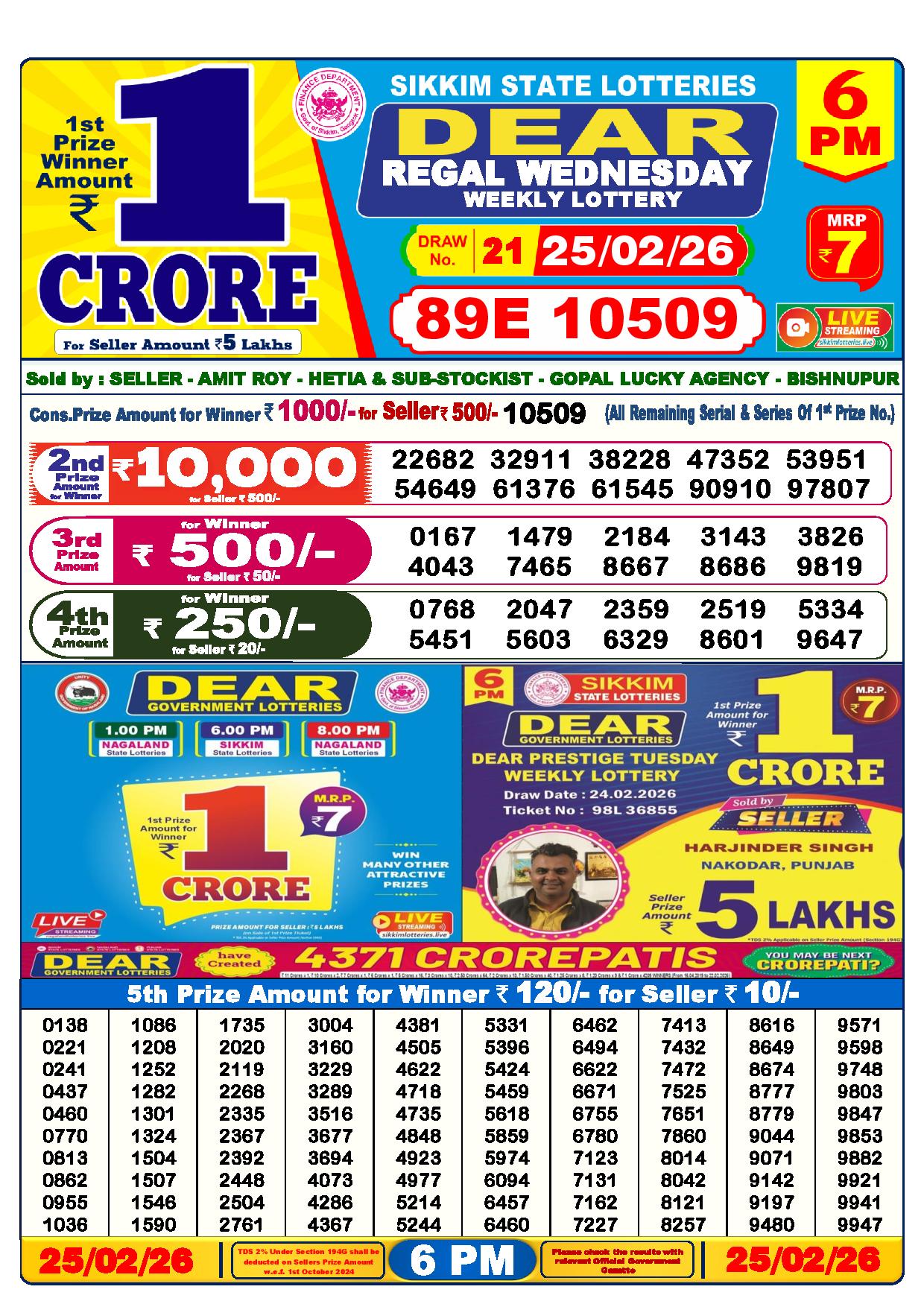 Lottery Sambad Yesterday Result 6 PM