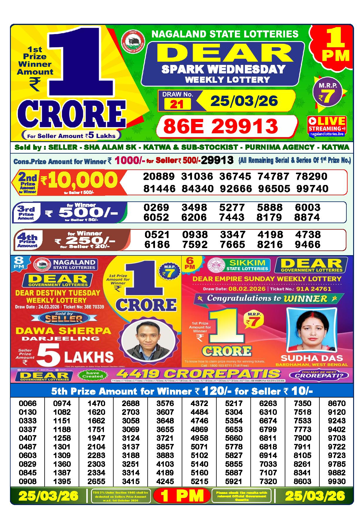Lottery Sambad Yesterday Result 6 PM