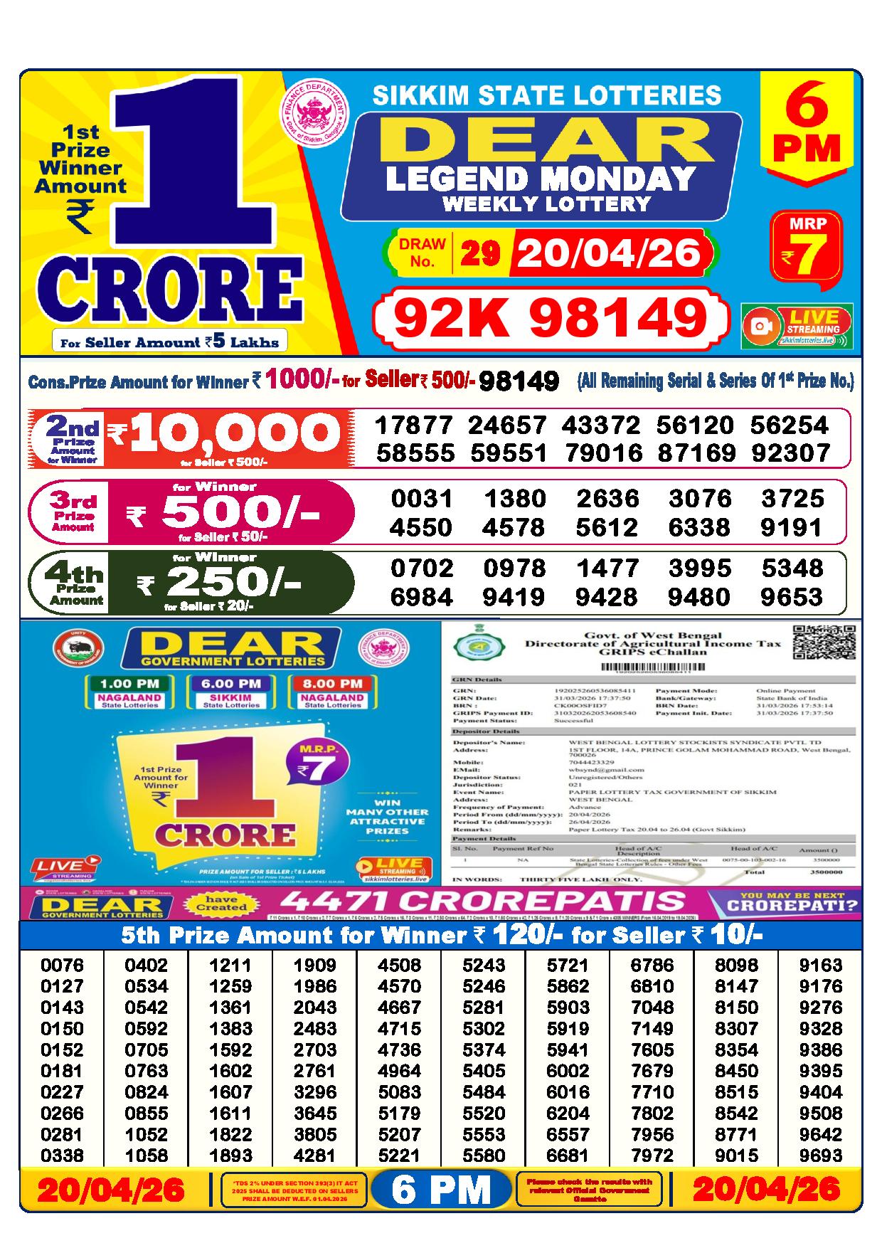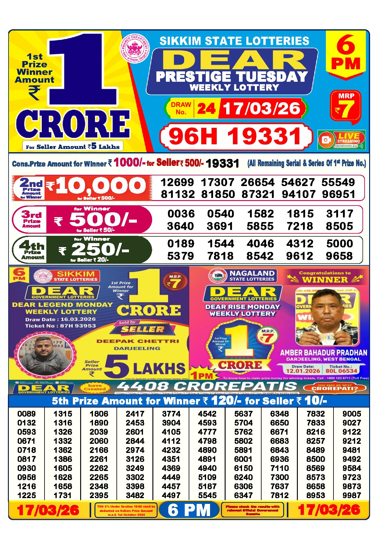 Lottery Sambad Yesterday Result 6 PM