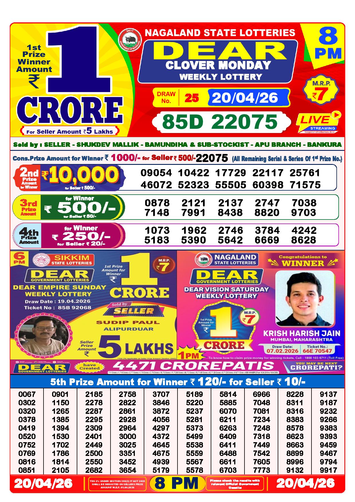 Lottery Sambad Yesterday Result 8 PM